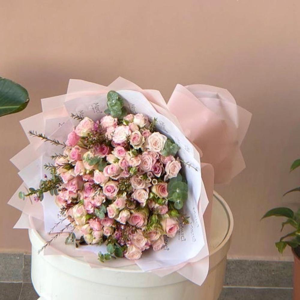 نوع الزهور: بيبي روز -روز - أوراق كليبتوس- واكس فلاور