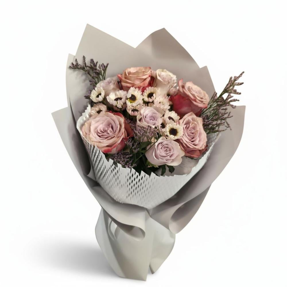 💐 باقة ورد طبيعي طازج من روز وكريز هولندي ولمينيوم