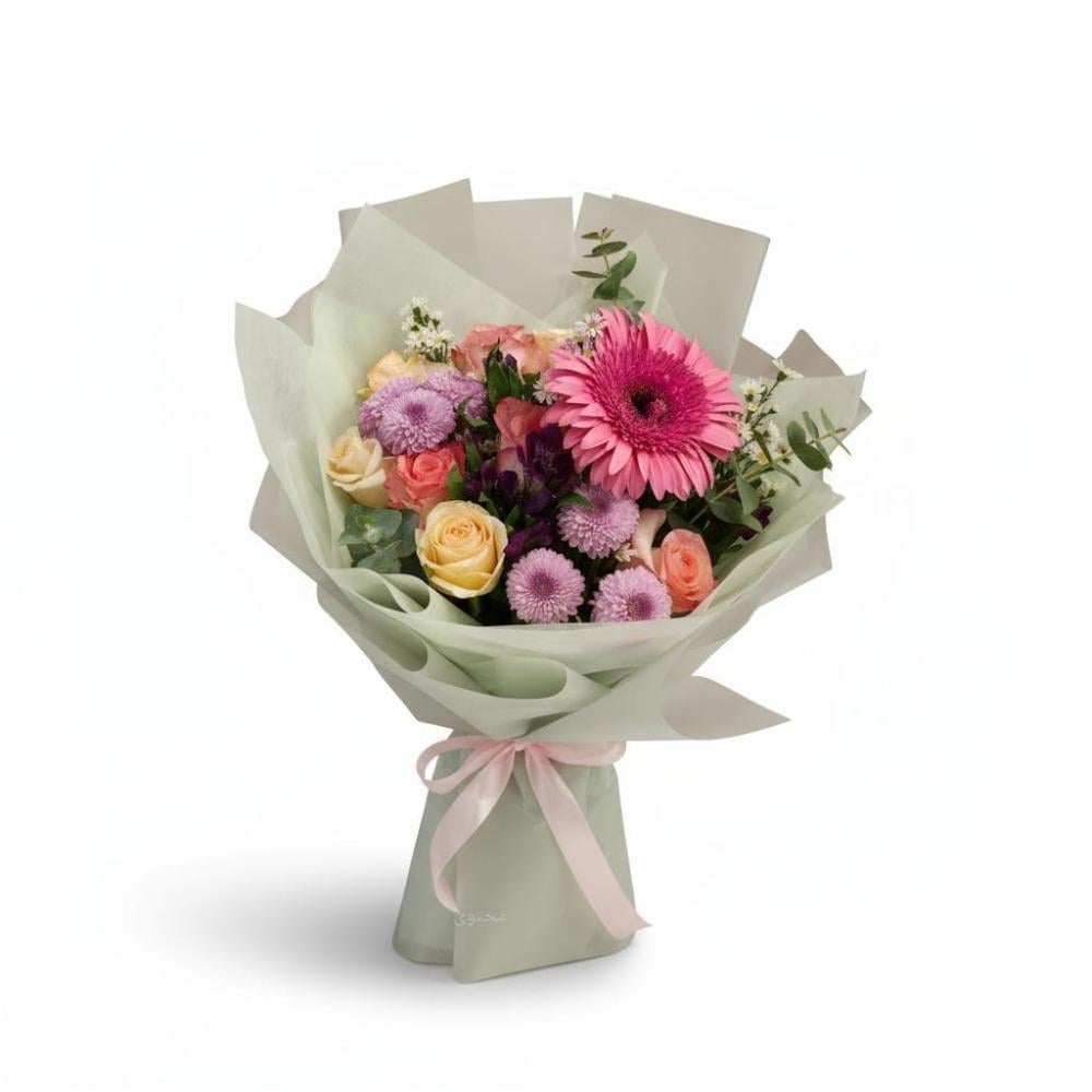 تألق في كل مناسبة مع باقة ورد طبيعي فاخر تضم جربيرا، كليبتوس، استروميريا، روز، استر وكريز من أجمل أزهار الموسم. تنسيق أنيق وفخم يعكس الذوق الرفيع ويمنح المكان طاقة من البهجة والرقي.