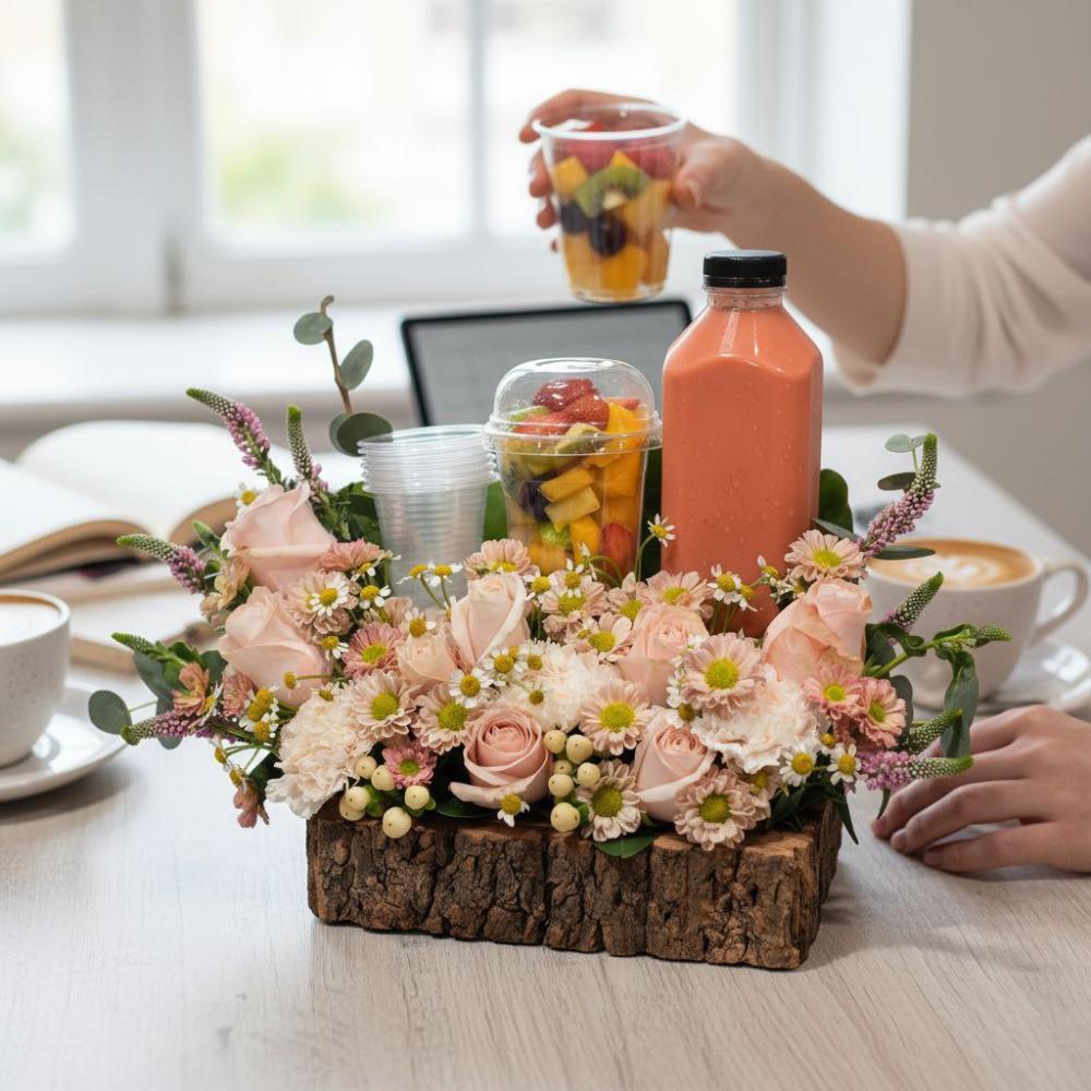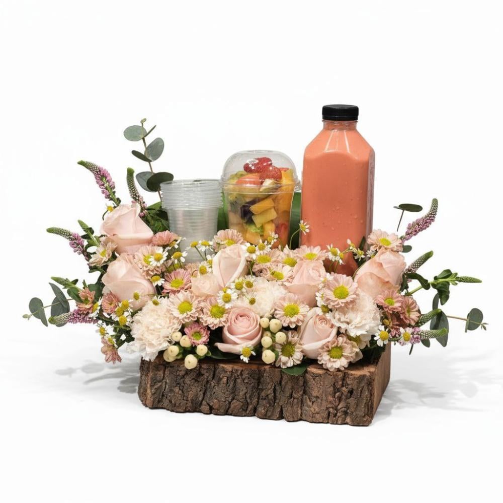 مع هذا التنسيق ستحصل على عصير طازج وفواكه مختارة بعناية لتجعل الهدية مليئة بالحياة والذوق الرفيع.