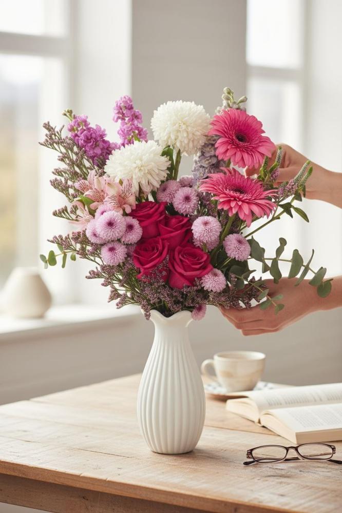 • فازة ورد طبيعي فاخر بتصميم أنيق يناسب جميع المناسبات